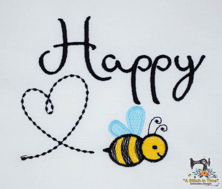 Bee Happy A - 5.56" tall by 5.93" wide 9,912 stitches