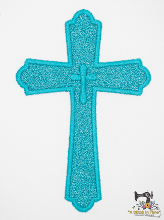 This beautiful Cross Applique can be used with fabric for the applique or glitter heat transfer vinyl in place of the fabric.