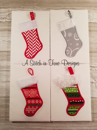 Design 1 has a satin stitch around the cuff on top for use with regular fabrics and design 2 has a "stem" stitch (narrow zigzag) around the cuff for use with fuzzier fabrics like curly fleece or fuzzy felt to leave the edges a little "messier"
