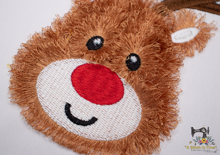 This adorable Reindeer design is created with fringe type stitching so when finished is a fluffy design.
