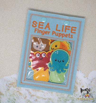 This set includes 5 ITH Finger Puppet designs and 2 versions of the ITH Finger Puppet Pouch. One of the pouches has lettering in the design and the other is blank at the top so you have the option to personalize it with a name.