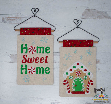 Adorable Christmas themed micro quilts to display in your home. The gingerbread house is done in an applique style.