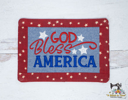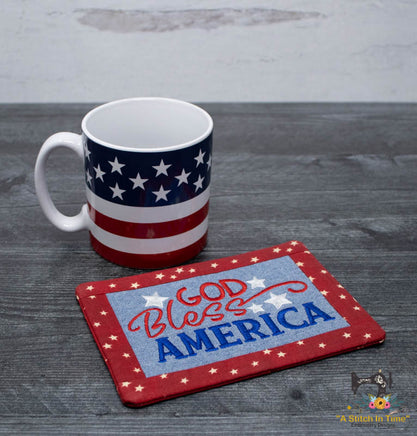 *This listing is for the ITH God Bless America Mug Rug design file only. Any other designs or supplies shown in photos here are samples of completed projects using additional designs and supplies.