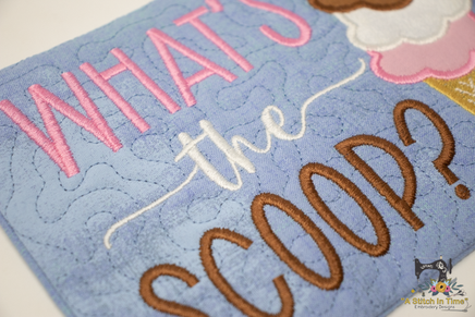 *This listing is for the ITH Ice Cream Mug Rug design files only. Any other designs or supplies shown in photos here are samples of completed projects using additional designs and supplies.