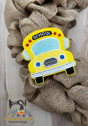 *This listing is for the ITH School Bus machine embroidery file for 5x7 hoops ONLY. Any other designs or supplies shown in photos here are samples of completed projects.