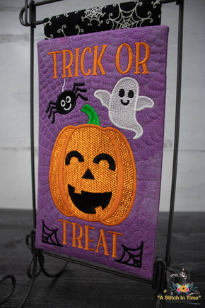 *This listing is for the ITH Trick or Treat Mini Quilt design file only. Any other designs or supplies shown in photos here are samples of completed projects using additional designs and supplies.