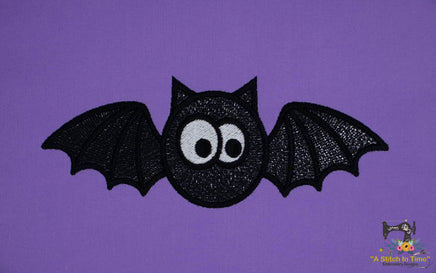 This adorable bat design is digitized with a light fill stitching that “shows through” and stitched onto an iridescent mylar underneath. This creates a sparkly jewel toned effect that is so pretty.