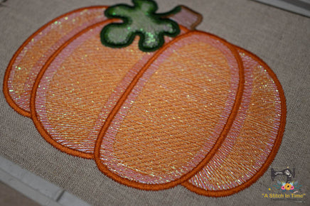 This beautiful Moon Bat design is digitized with a light fill stitching that “shows through” and stitched onto an iridescent mylar underneath. This creates a sparkly jewel toned effect that is so pretty.