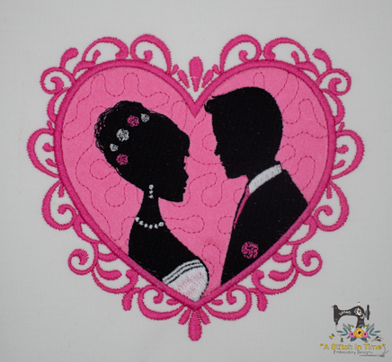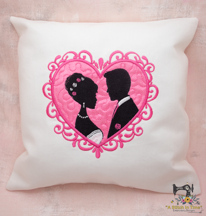 Stitch out this beautiful Wedding Heart Applique on a pillow cover, shirt, tote, linens, towels, etc.