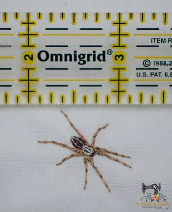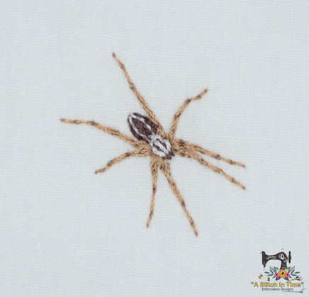 Jonathan digitized this tiny Wolf Spider as a prank sort of design. He would love to see what you stitch it on.