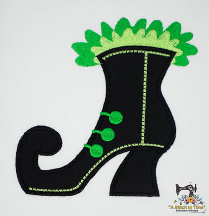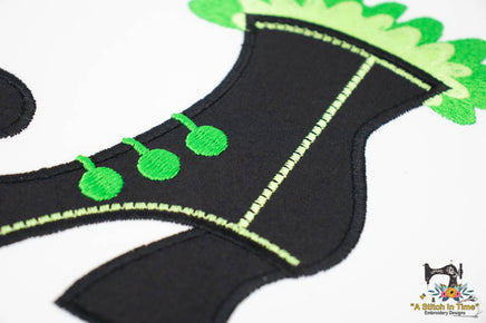This cute witch boot design is an applique style design. We used black fabric for the boot.