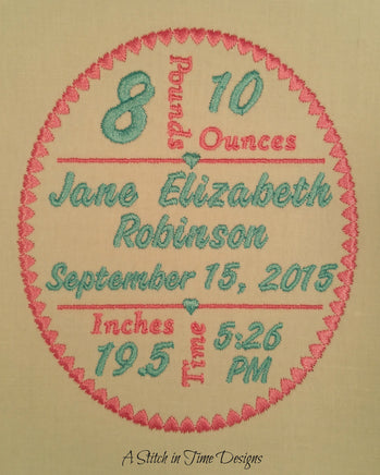 Create a custom Birth Announcement suitable for framing, adding to baby blanket, softie, etc.