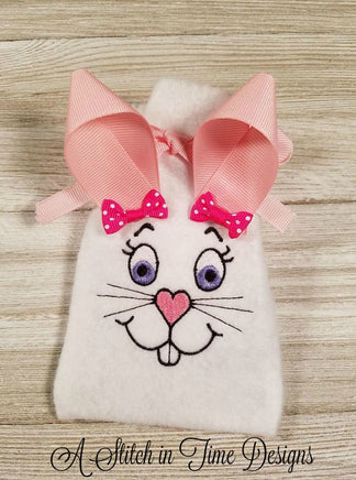 *Treat bag shown was cut out, embroidered with the bunny face, than stitched together on a sewing machine. Pattern for the treat bag is not included with this embroidery design.