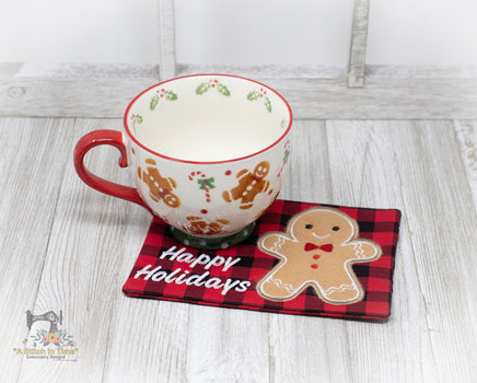*This listing is for the ITH Gingerbread Mug Rug design file only. Any other designs or supplies shown in photos here are samples of completed projects using additional designs and supplies.