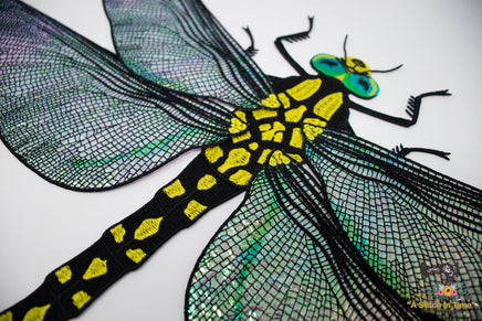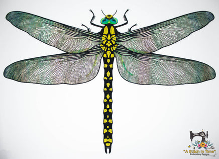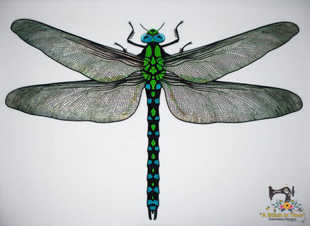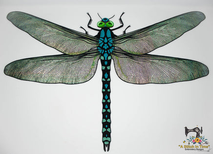 This dragonfly design is digitized and designed for use with iridescent mylar to hold the wing stitches together. This creates a sparkly jewel toned effect that gives the wings the look of realistic dragonfly wings.