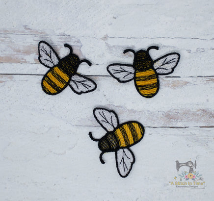 FSL Bee - Small 2.87" tall by 2.03" wide 5,042 stitches