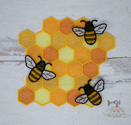 *Design size listed below is the size that stitches out and includes 2 bees. This is not the finished earring size. (Finished earring size is: 1.46" tall by 2.00" wide)