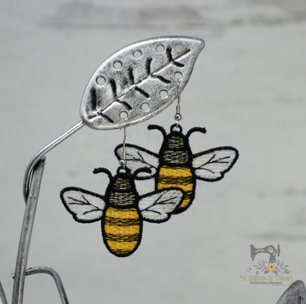 FSL Bee Earrings 3.01" tall x 2.03" wide 5,164 stitches