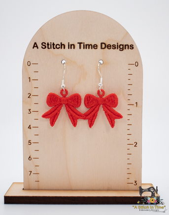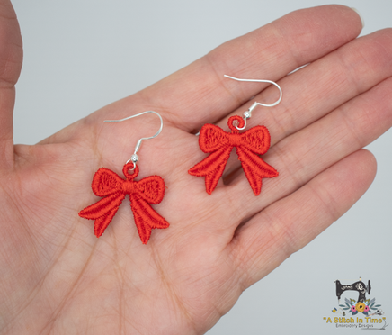 FSL Christmas Bow Earring Design Size: H: 1.04” x W: 2.08” (both earrings in a hoop)