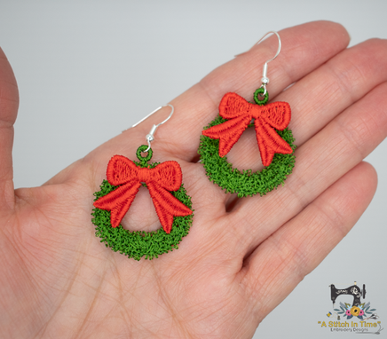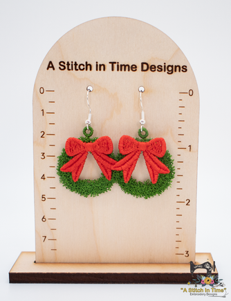 1: FSL Christmas Wreath Earring Design Size: H: 3.08” x W: 1.26” (both earrings in a hoop)
