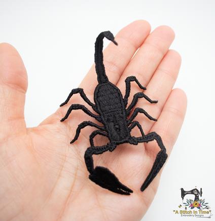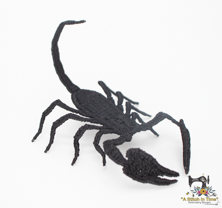 FSL Forest Scorpion x1 Design File Size: 2.84" W x 5.10" T Stitch Count: 7,305
