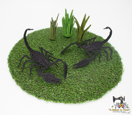 FSL Forest Scorpion x2 Design File Size: 4.43" W x 6.87" T Stitch Count: 14,613