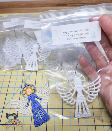 This year I asked my son who is a digitizer for our home business, to create a FSL Angel small enough to keep several in my purse at a time without taking up too much room since I like to carry a small purse.