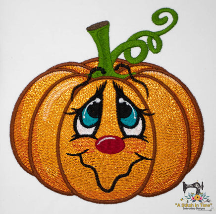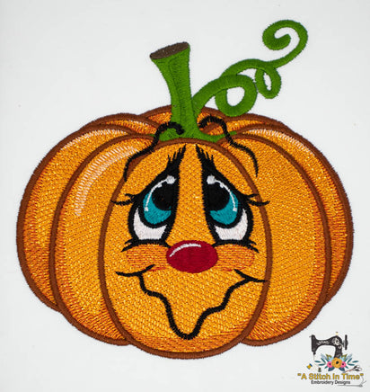This shimmery pumpkin design is digitized with a light fill that "shows through" and stitched out with orange mylar underneath. This creates a sparkly jewel toned effect that is so pretty!