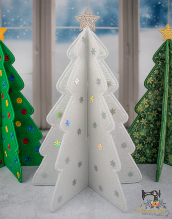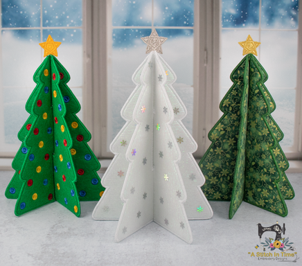 This cute ITH Christmas Tree has 3 pieces that slide together to form a standing tree.