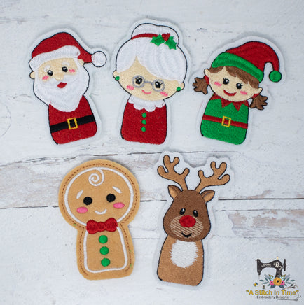 This set includes 5 ITH Finger Puppet designs and 2 versions of the ITH Finger Puppet Pouch. One of the pouches has lettering in the design and the other is blank at the top so you have the option to personalize it with a name.