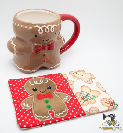 This cute ITH Gingerbread Mug Rug pairs great with this mug from Dollar General Store. (Mug is NOT included - just a suggestion)