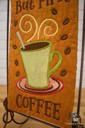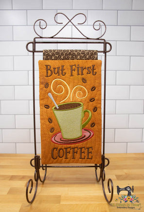 *This listing is for the ITH Coffee Mini Quilt design file only. Any other designs or supplies shown in photos here are samples of completed projects using additional designs and supplies.