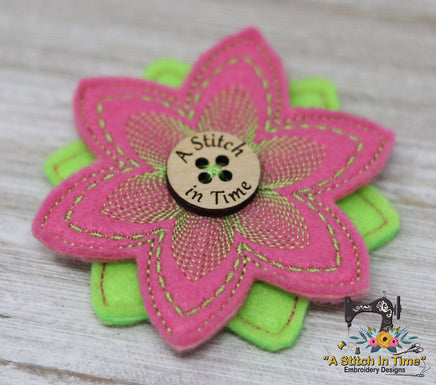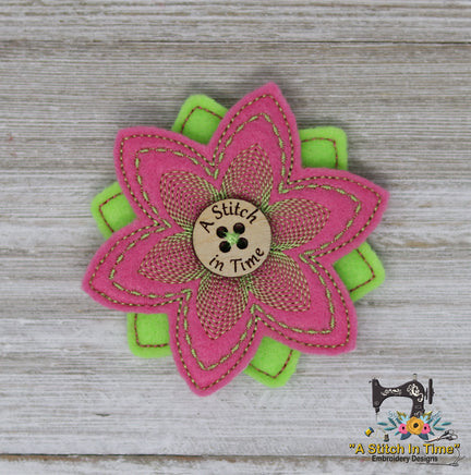*This listing is for the ITH Two Layer Flower design file only. Any other designs or supplies shown in photos here are samples of completed projects using additional designs and supplies.