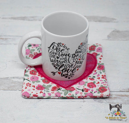 *This listing is for the ITH Applique Heart Mug Rug design file only. Any other designs or supplies shown in photos here are samples of completed projects using additional designs and supplies.