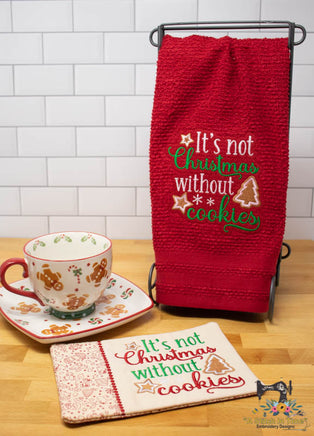 This cute ITH Mug Rug design also includes the Christmas Cookies design by itself so you can stitch it on matching accessories like kitchen towels, etc. We have also included the design by itself with a "towel smash" under the design that stitches out and flattens the loops on a towel to give the area a flatter surface for the design to stitch on.