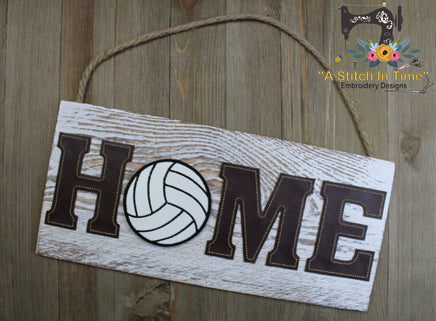 The photo with HOME shown on a wooden sign was created with a 12" wide by 5.5" tall wooden sign, the ITH Volleyball design and the ITH Lettering Set