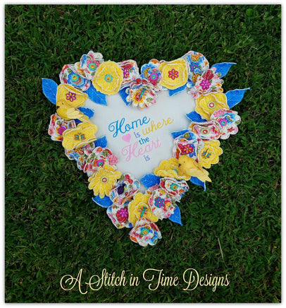 *Wreath and ITH Flower design pictured are NOT included. This listing is for the digital embroidery file "Home is where the heart is" only.