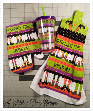 Create your own layout using 5 separate designs in this set. We used a pair of the legs on the adorable Towel Topper from Embroidery Garden's Kitchen Set.