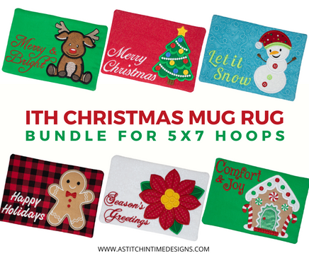 Stitch out these adorable ITH Mug Rugs in 5x7 hoops that are perfect for holiday décor or gifting. Pair them with a cute mug and some hot cocoa packets and you have the perfect cozy gift for almost any age.