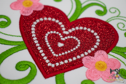 Stitch out this beautiful Blooming Heart Applique on a shirt, tote, linens, towels, etc.