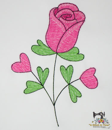 Rose: 1.85”w by 6.94”h - 5,216 Stitches