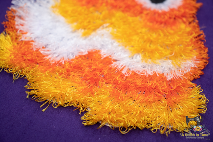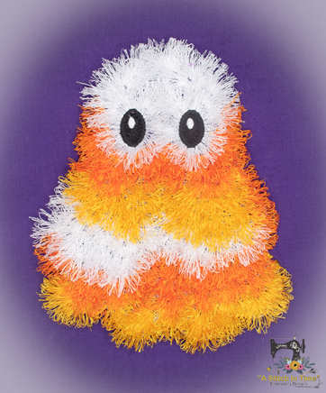 Fringe Candy Corn Ghost: 6.02" tall by 5.00" wide 17,721 stitches