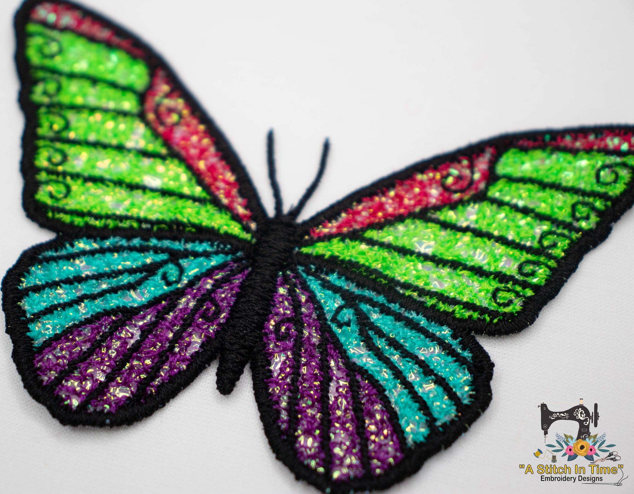 FSL & Mylar Colorfly Butterfly Design File Size: H: 2.90” x W: 3.85” Stitch Count 9,280