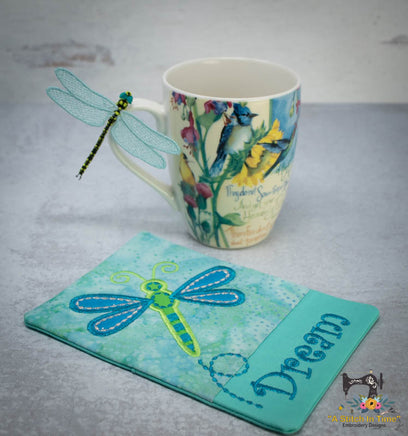 *This listing is for the ITH Dragonfly Mug Rug Set of 3 design file only. Any other designs or supplies shown in photos here are samples of completed projects using additional designs and supplies.