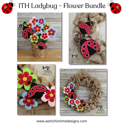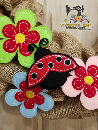 Grab this fun ITH Ladybug-Flower Feltie Bundle while it is on special. Limited quantity available.
